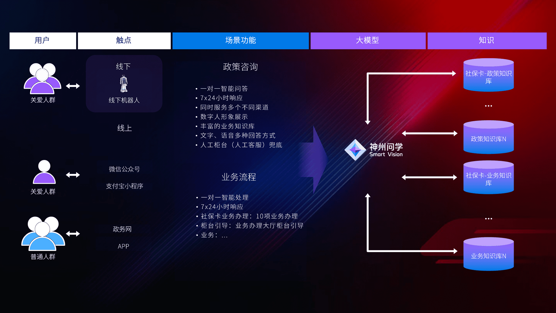 • 线上线下全覆盖:线上提供微信公众号、、、支付宝小程序、、政务网、、app多种渠道,,,与线下机器人形成完整服务体系。。。。